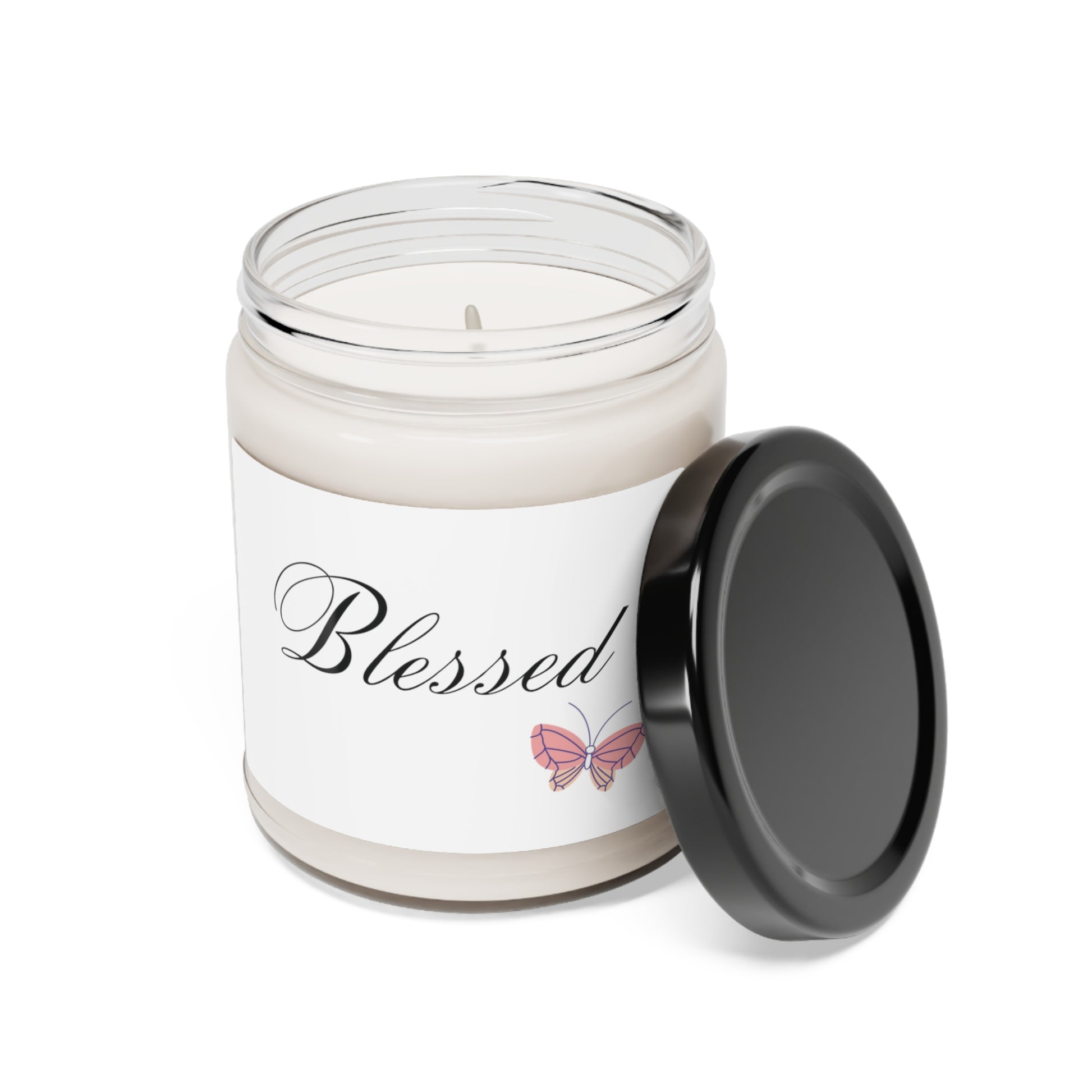 Crafted from 100% natural soy wax and featuring a beautiful pink butterfly symbolizing renewal, this scented candle serves as a comforting reminder of God’s blessings.