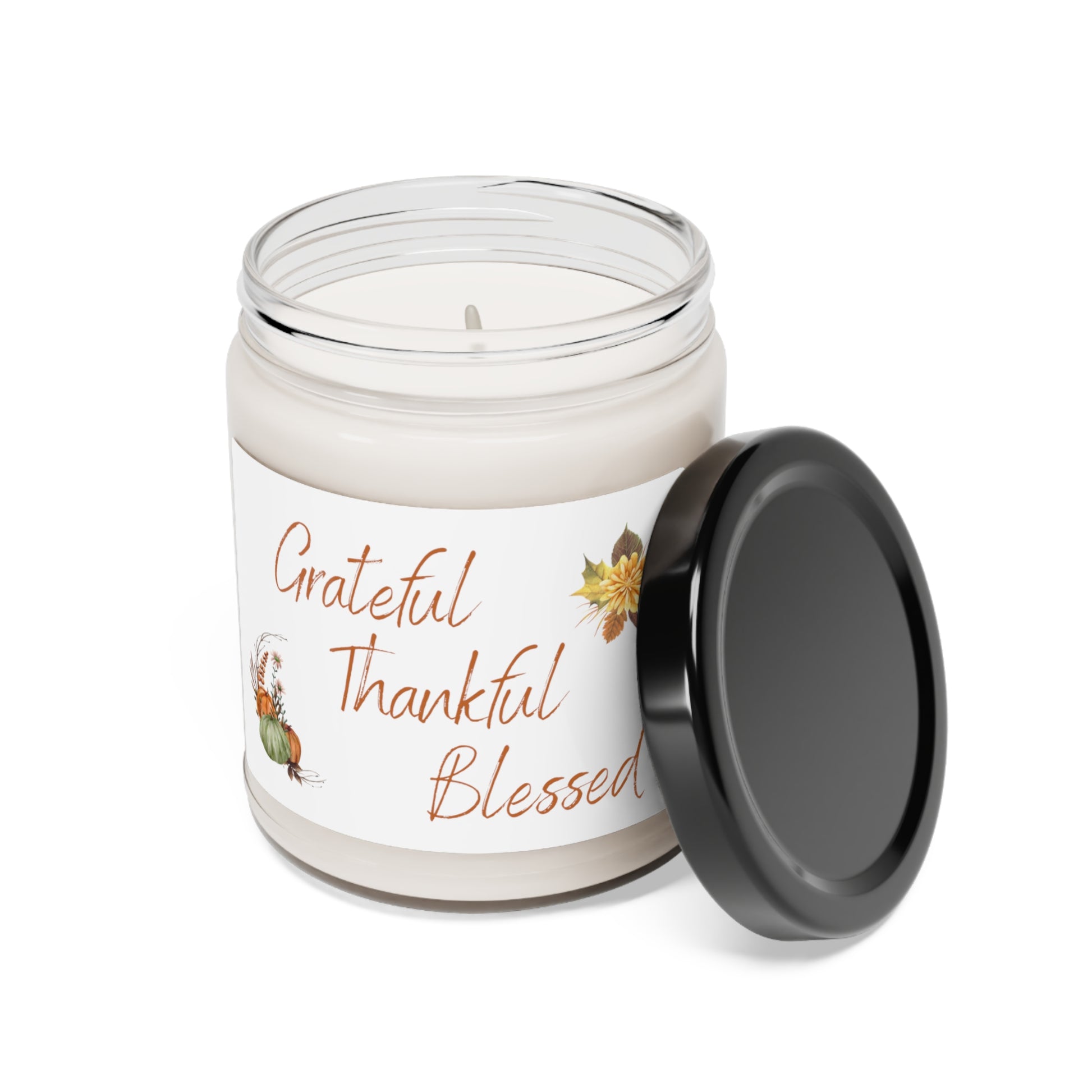 Christian 9oz Soy Wax Candle Autumn Harvest Scent, Grateful Thankful Blessed Fall Candle