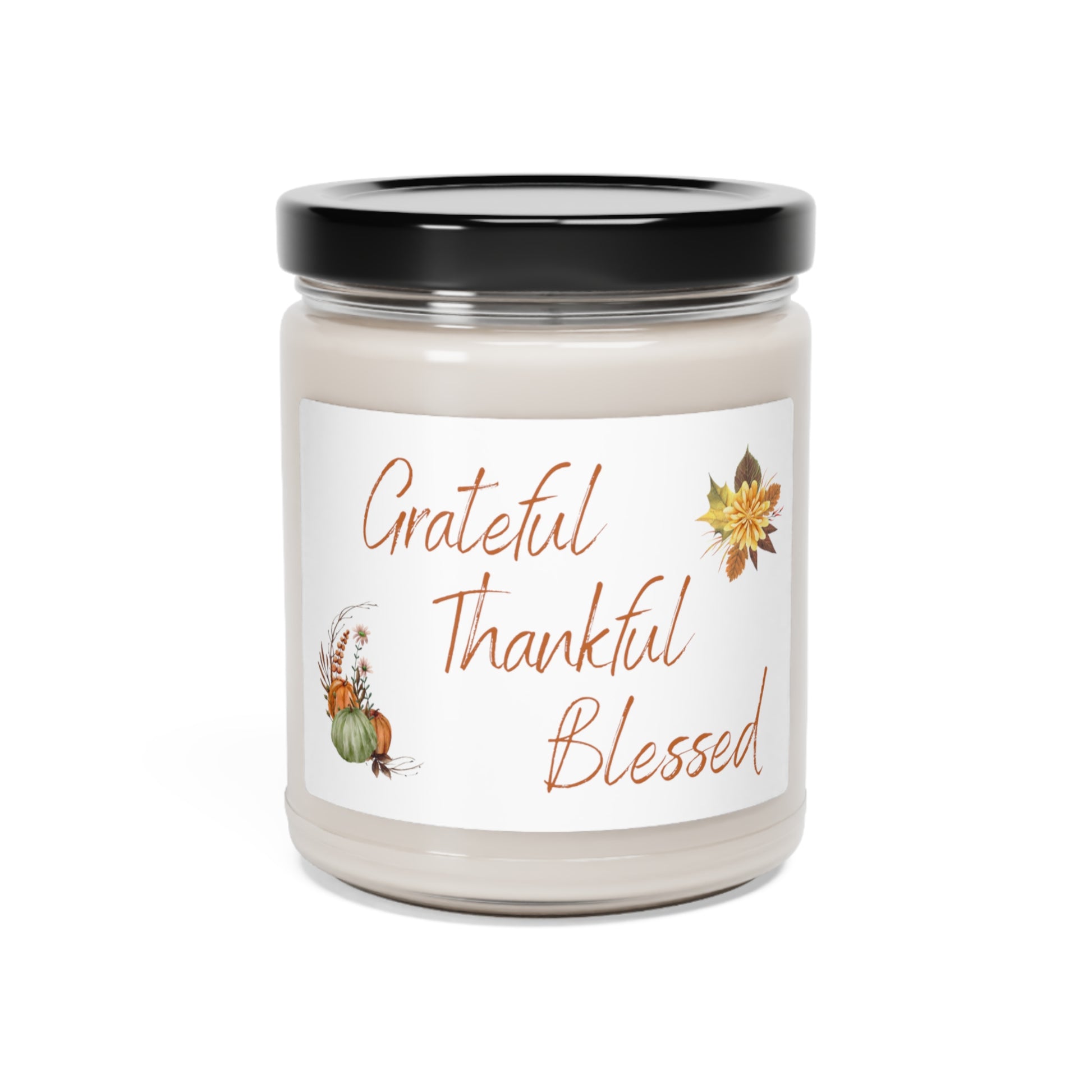 Fill your home with warmth and gratitude this fall with our "Grateful Thankful Blessed" Christian Candle.