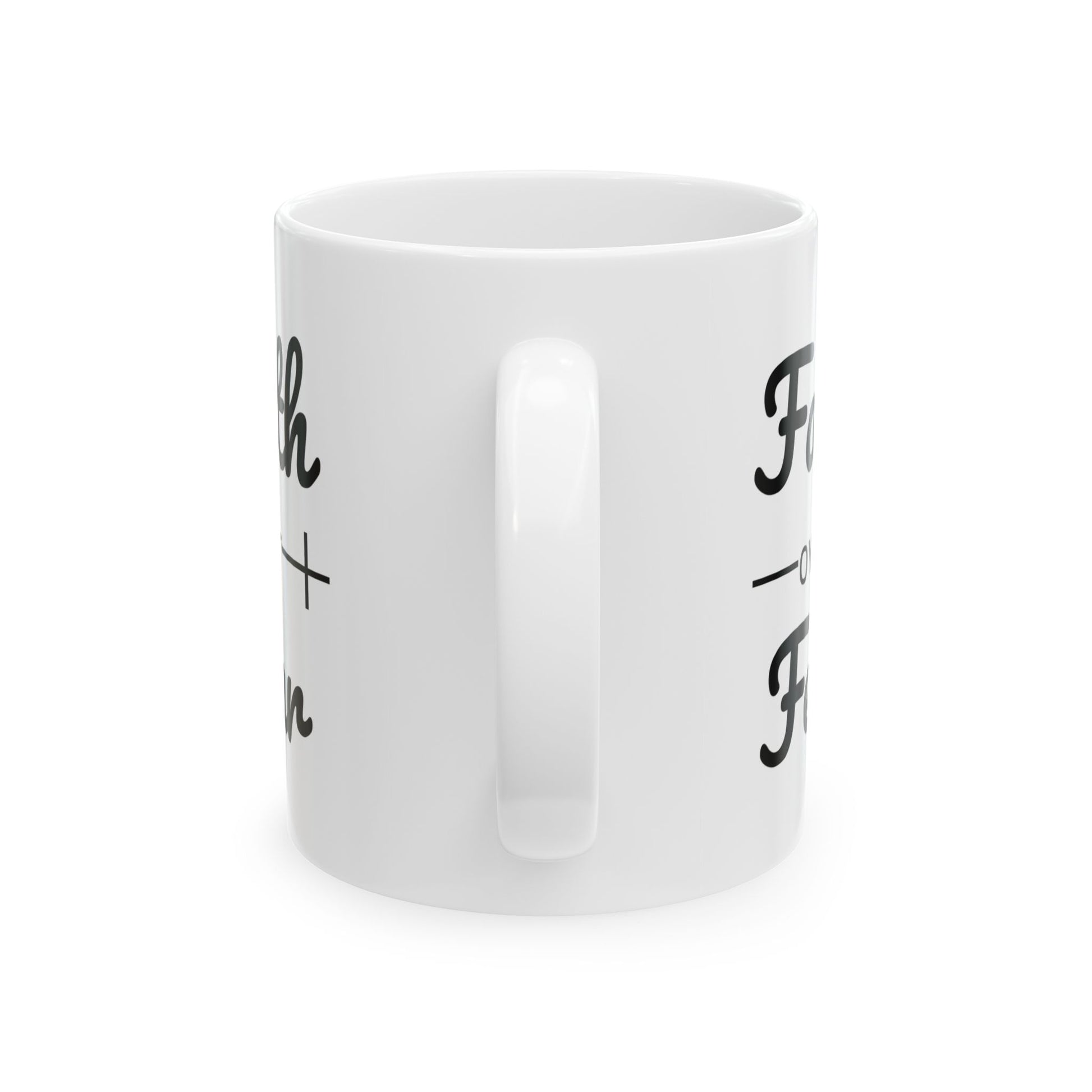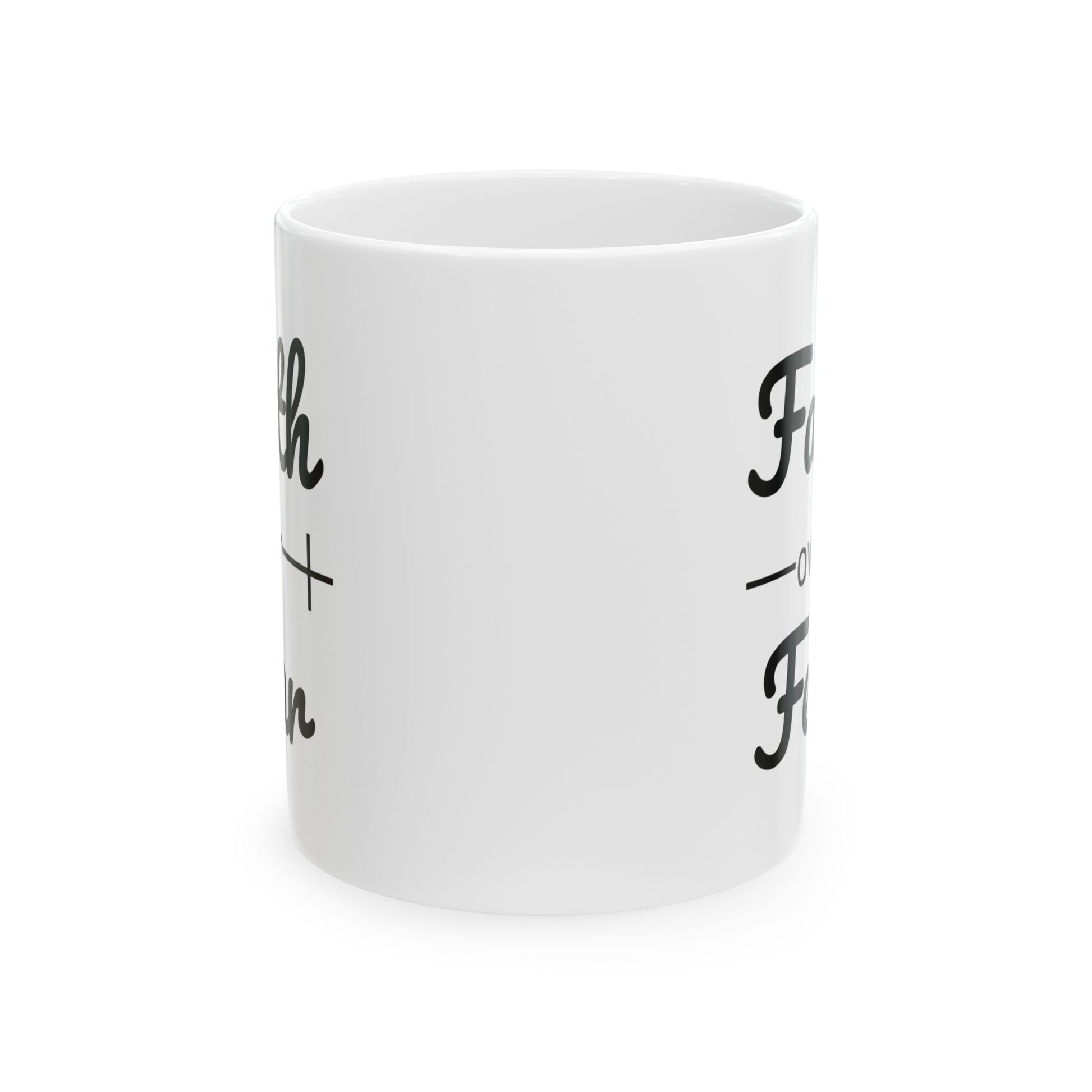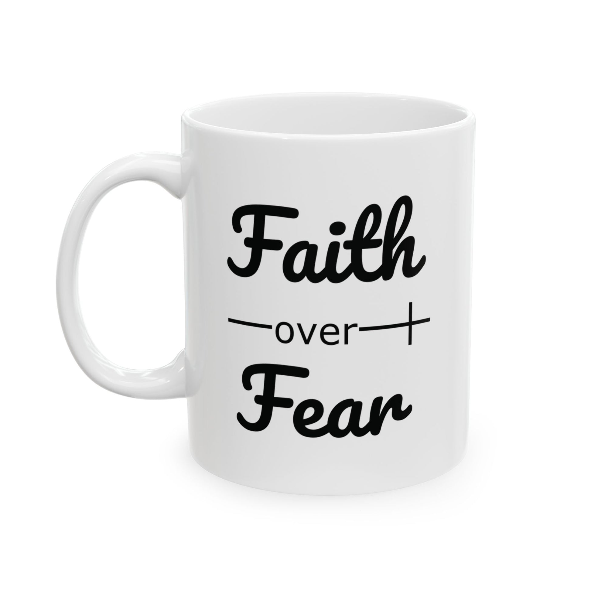 - Start your day with a boost of faith and inspiration with our "Faith Over Fear" Ceramic Coffee Mug.