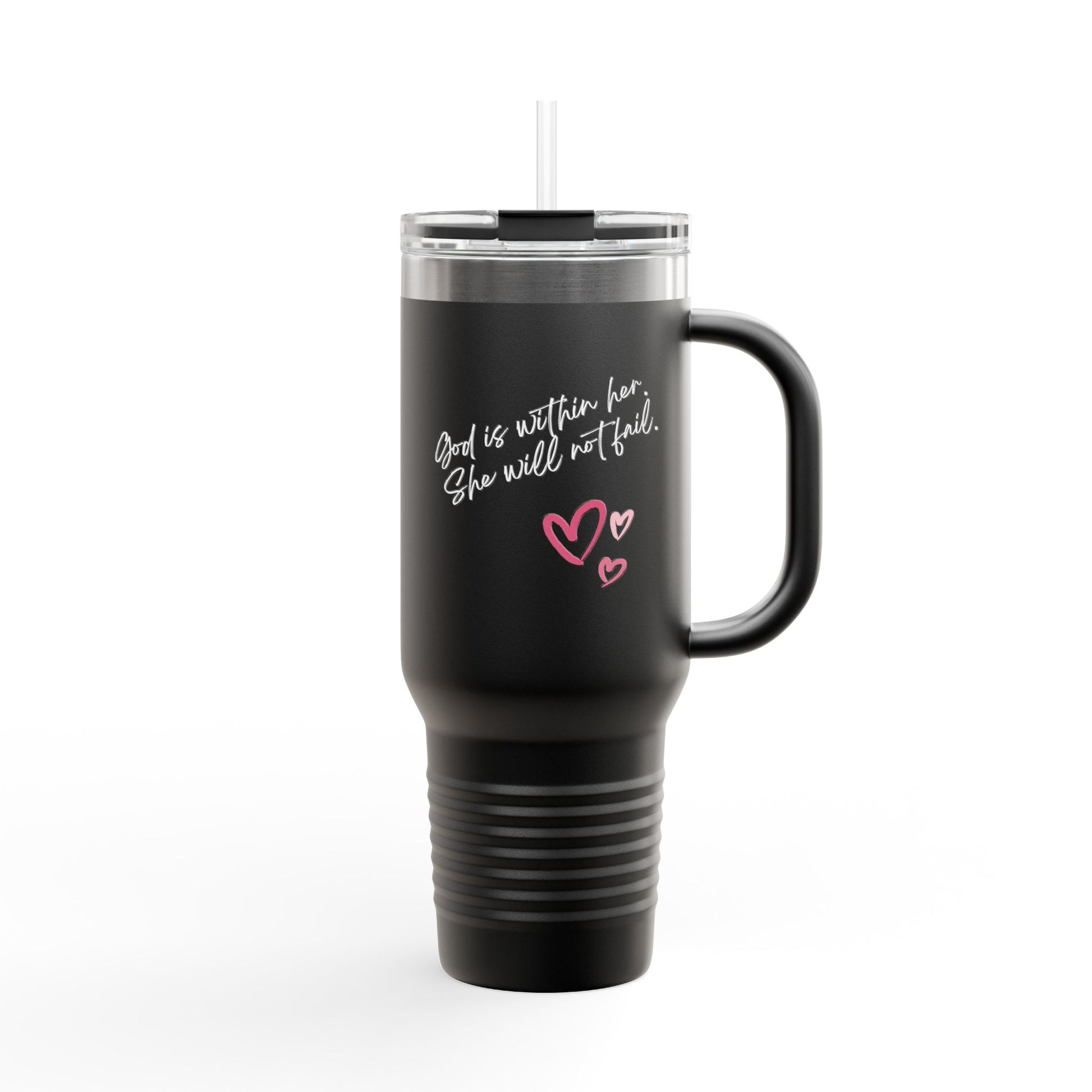 - Stay refreshed and inspired all day long with our "God is Within Her" 40oz Insulated Christian Tumbler with Handle, Lid, and Straw.
