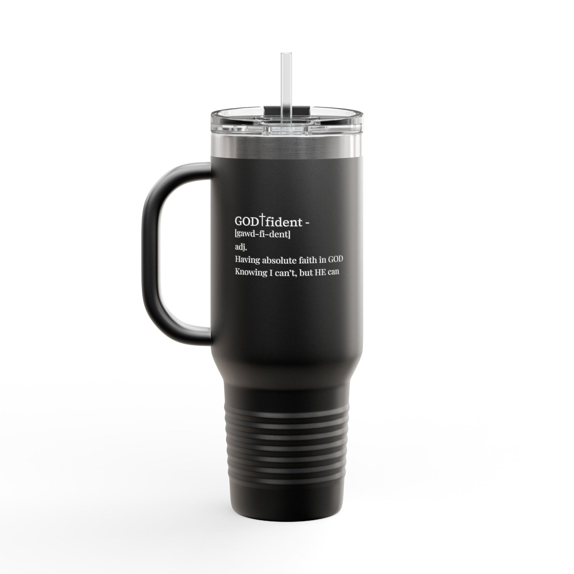 Whether you’re sipping coffee during morning prayer, hydrating after the gym, or heading into a busy day, this Christian travel mug reminds you to stay grounded in faith. Because confidence fades… but being God-fident never will.