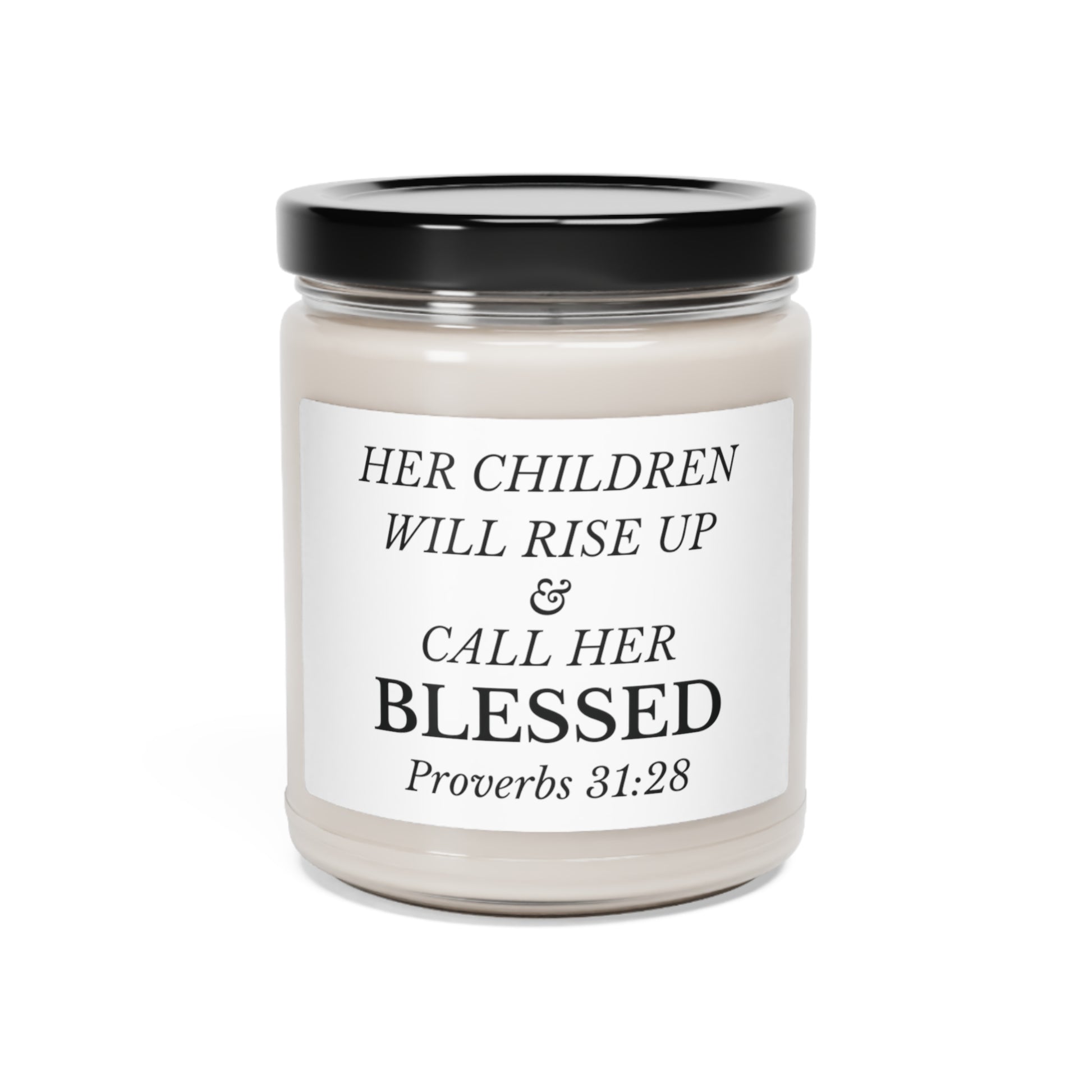 Scented Soy Wax 9 oz Jar Candle Christian Scripture Her Children Will Rise Up and Call Her Blessed Proverbs 31:28 Gift for Mother